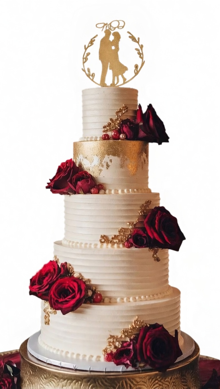 A rich and romantic classic, layered with soft red velvet sponge and creamy frosting, designed for your big day.